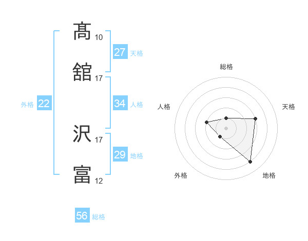 髙舘 沢富さんの総格は56画の1点!