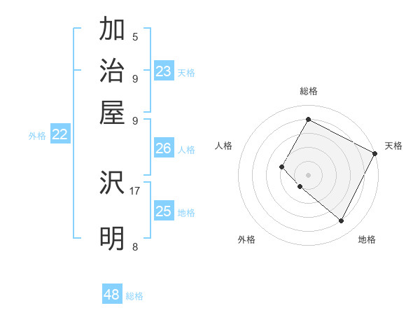 加治屋 沢明さんを姓名の画数から五運を鑑定