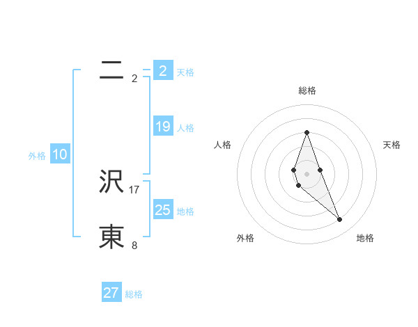 二 沢東さんの総格は27画の3点!