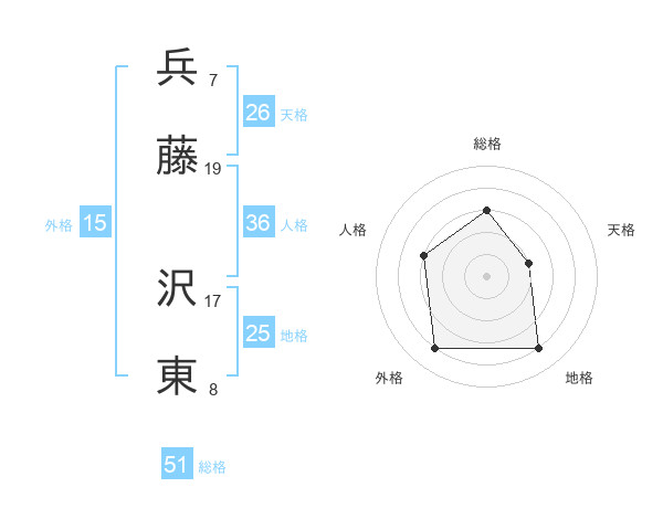 兵藤 沢東さんを姓名の画数から五運を鑑定