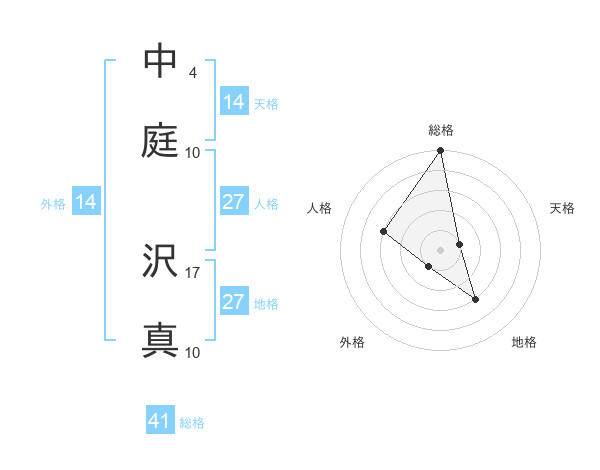 中庭 沢真さんを姓名の画数から五運を鑑定