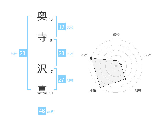 奥寺 沢真さんの外格は23画の5点!