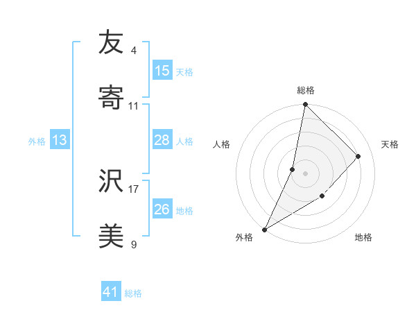 友寄 沢美さんを姓名の画数から五運を鑑定