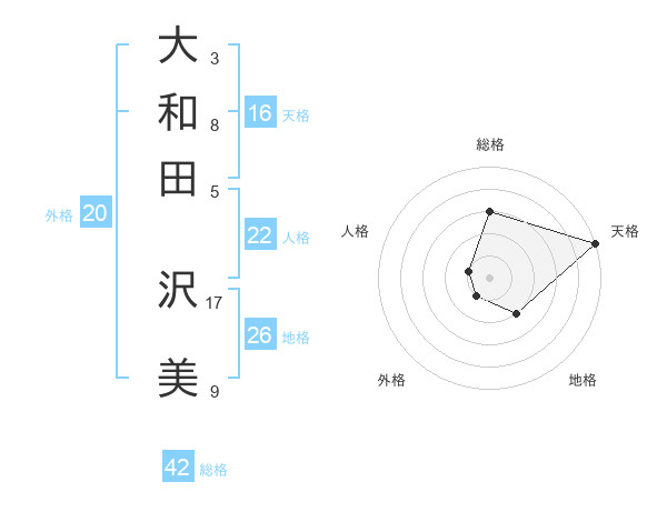大和田 沢美さんの総格は42画の3点!
