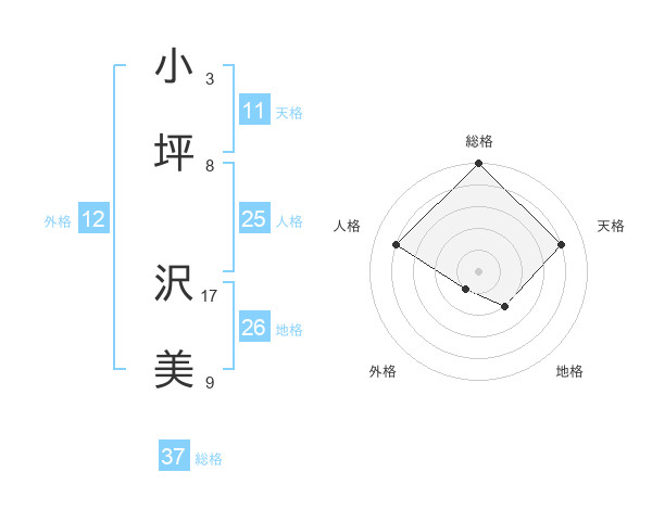 小坪 沢美さんを姓名の画数から五運を鑑定