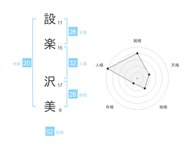 設楽 沢美さんの総格は52画の4点!