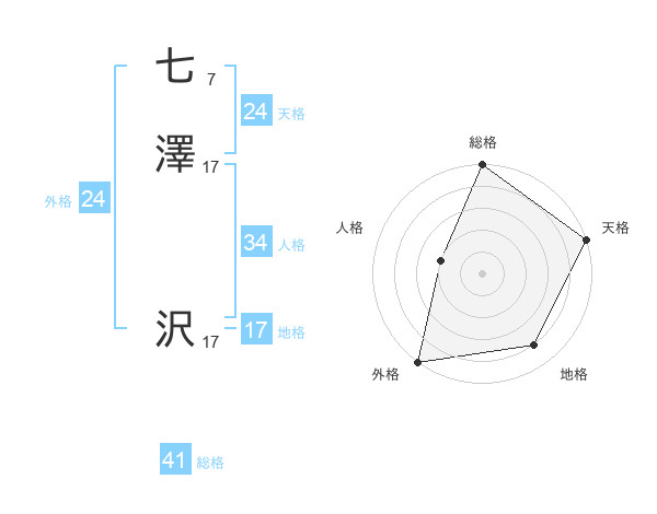 七澤 沢さんの天格は24画の5点!