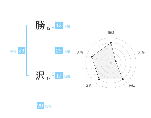 勝 沢さんの総格は29画の4点!