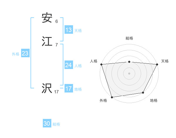 安江 沢さんの総格は30画の2点!