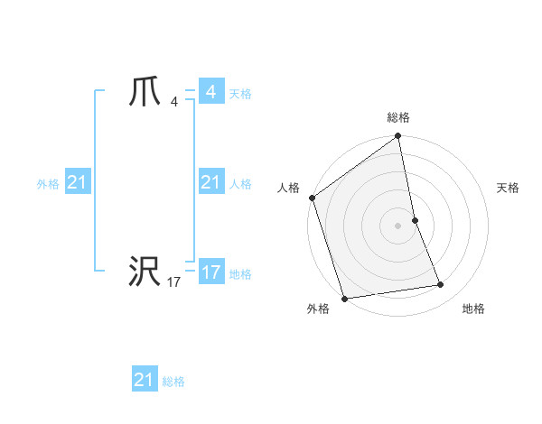 爪 沢さんの外格は21画の5点!