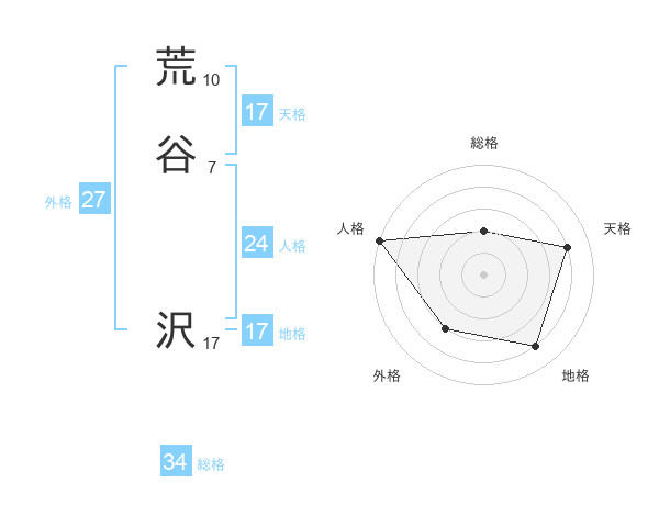 荒谷 沢さんを姓名の画数から五運を鑑定