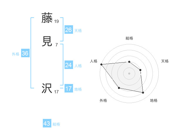 藤見 沢さんの総格は43画の2点!
