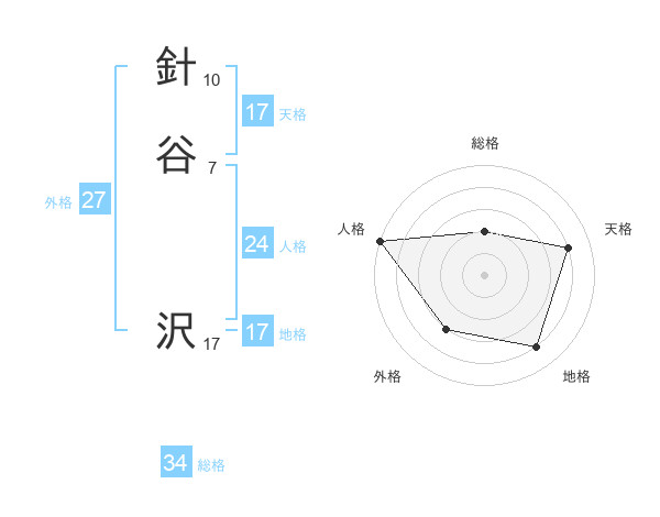 針谷 沢さんの地格は17画の4点!