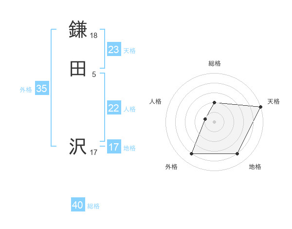 鎌田 沢さんの天格は23画の5点!