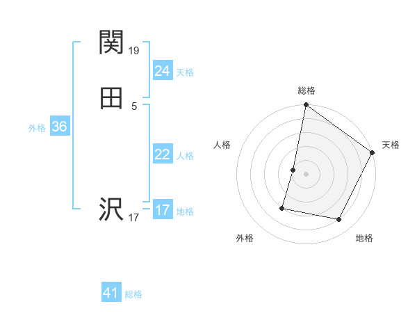 関田 沢さんの総格は41画の5点!