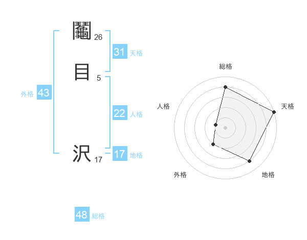 鬮目 沢さんの天格は31画の5点!