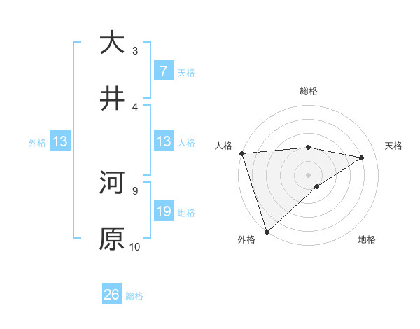大井 河原さんの総格は26画の2点!