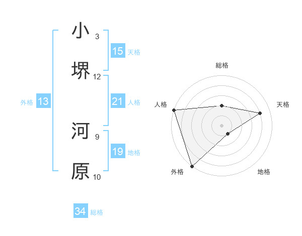 小堺 河原さんの総格は34画の2点!