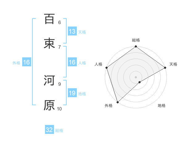 百束 河原さんの外格は16画の5点!