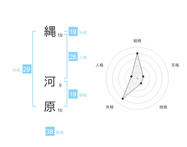 縄 河原さんの総格は38画の4点!