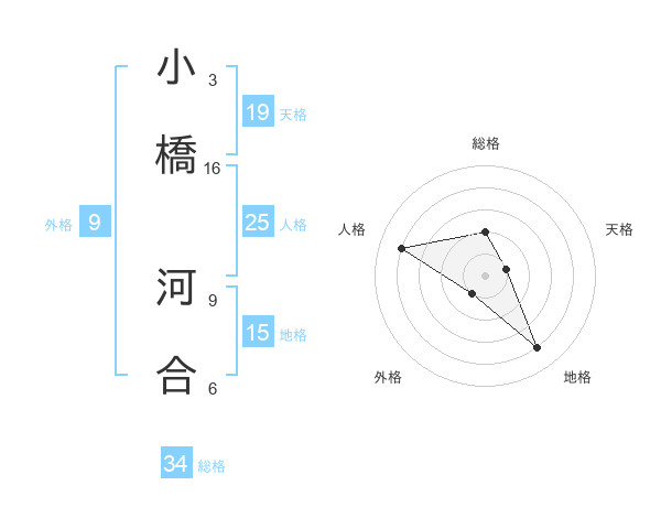小橋 河合さんの総格は34画の2点!