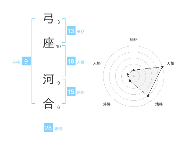 弓座 河合さんの総格は28画の1点!