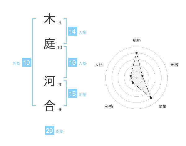 木庭 河合さんの総格は29画の4点!