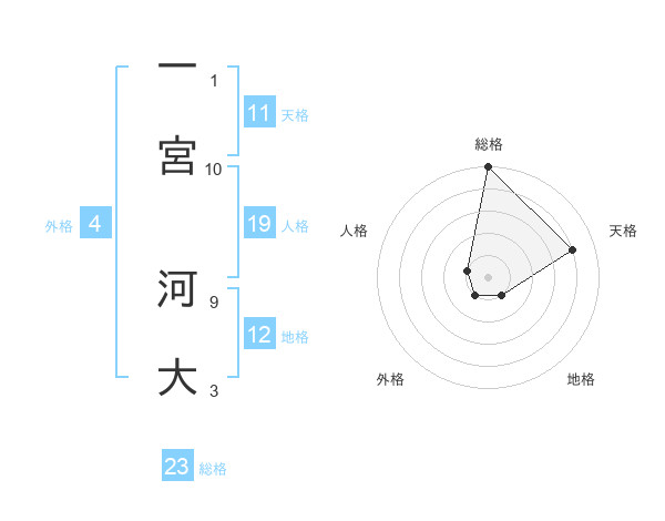一宮 河大さんの総格は23画の5点!