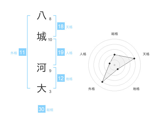 八城 河大さんの総格は30画の2点!