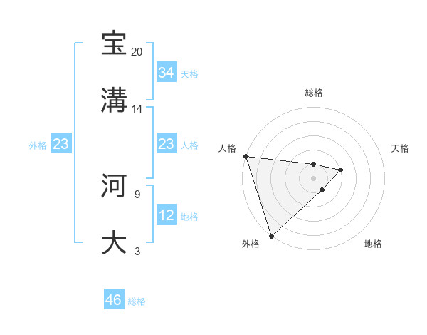 宝溝 河大さんの総格は46画の1点!