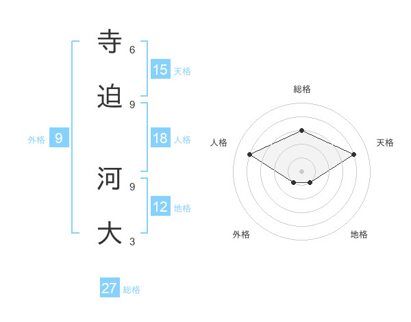 寺迫 河大さんの総格は27画の3点!