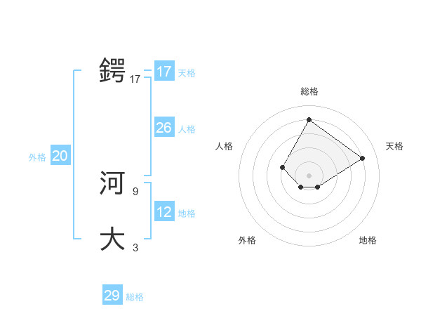 鍔 河大さんの天格は17画の4点!