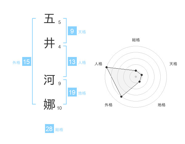 五井 河娜さんを姓名の画数から五運を鑑定