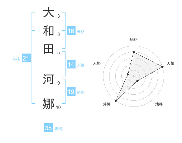 大和田 河娜さんを姓名の画数から五運を鑑定