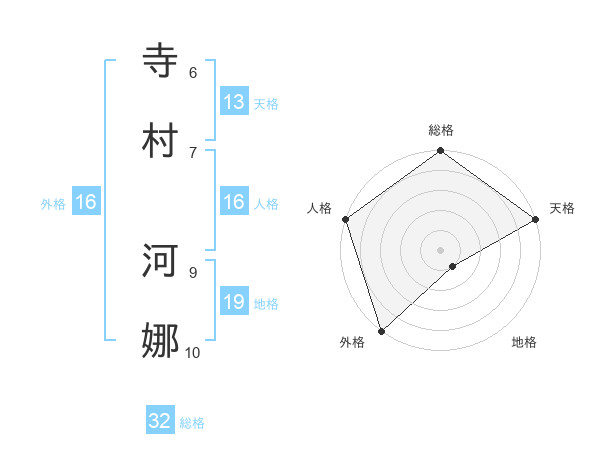 寺村 河娜さんの外格は16画の5点!