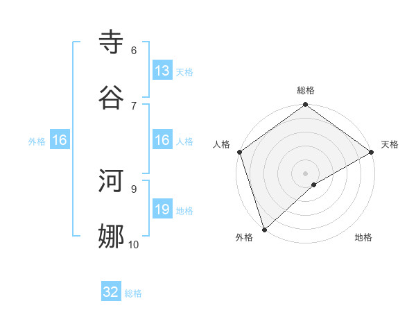 寺谷 河娜さんの外格は16画の5点!