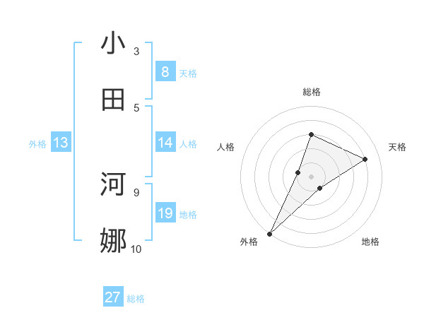 小田 河娜さんの外格は13画の5点!