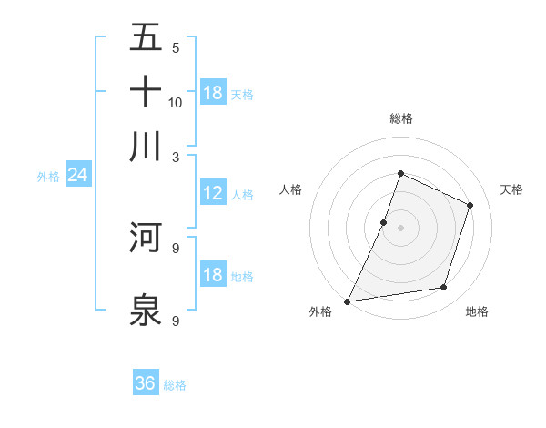 五十川 河泉さんを姓名の画数から五運を鑑定