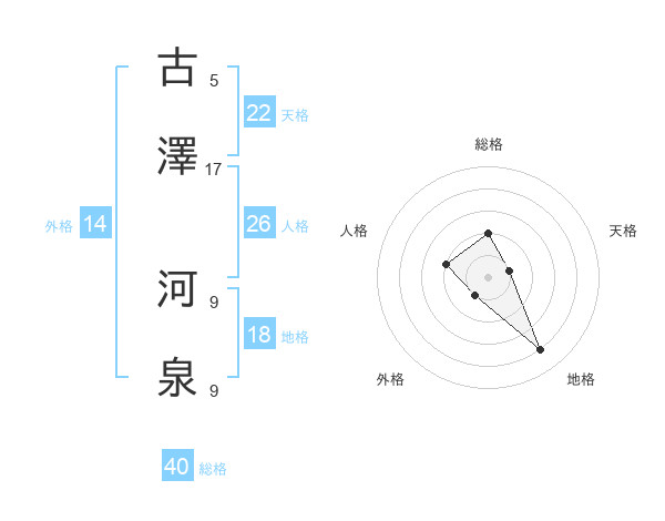 古澤 河泉さんを姓名の画数から五運を鑑定