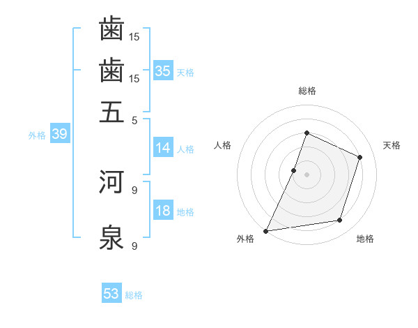 歯歯五 河泉さんの外格は39画の5点!