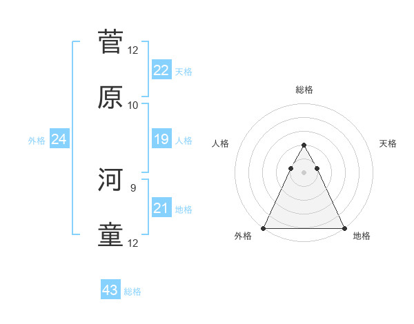 菅原 河童さんの総格は43画の2点!