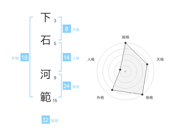 下石 河範さんの総格は32画の5点!