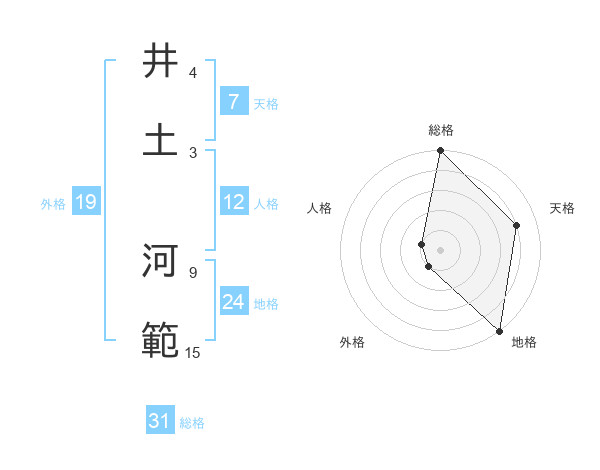 井土 河範さんの地格は24画の5点!