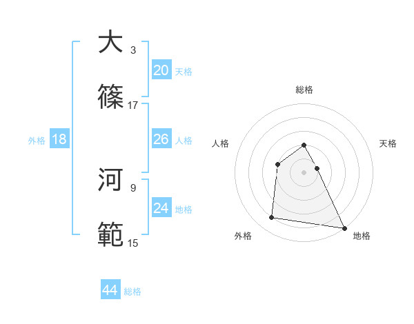 大篠 河範さんの総格は44画の2点!