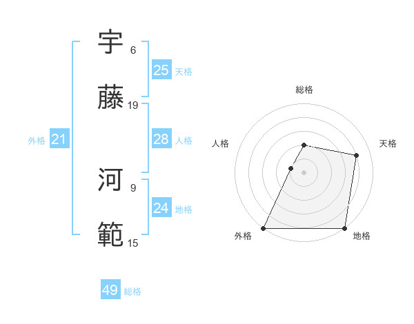 宇藤 河範さんの総格は49画の2点!
