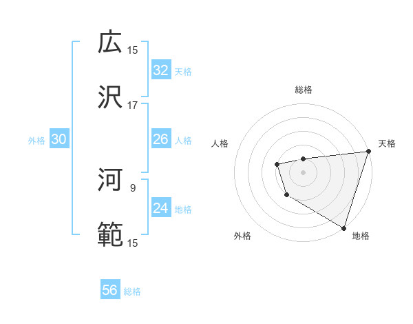 広沢 河範さんの天格は32画の5点!