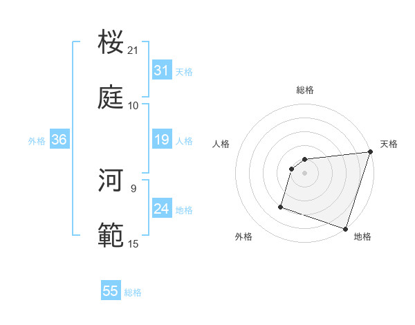 桜庭 河範さんを姓名の画数から五運を鑑定