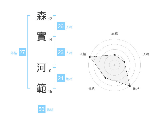 森實 河範さんの総格は50画の2点!