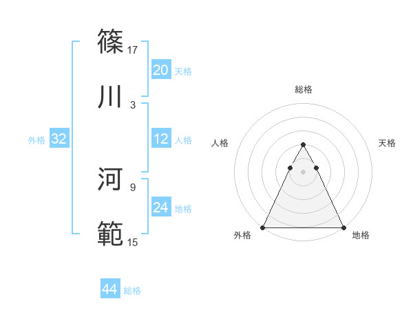 篠川 河範さんの総格は44画の2点!