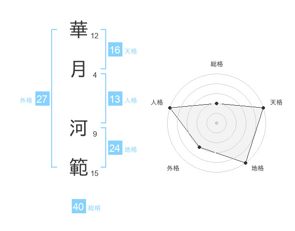 華月 河範さんの天格は16画の5点!